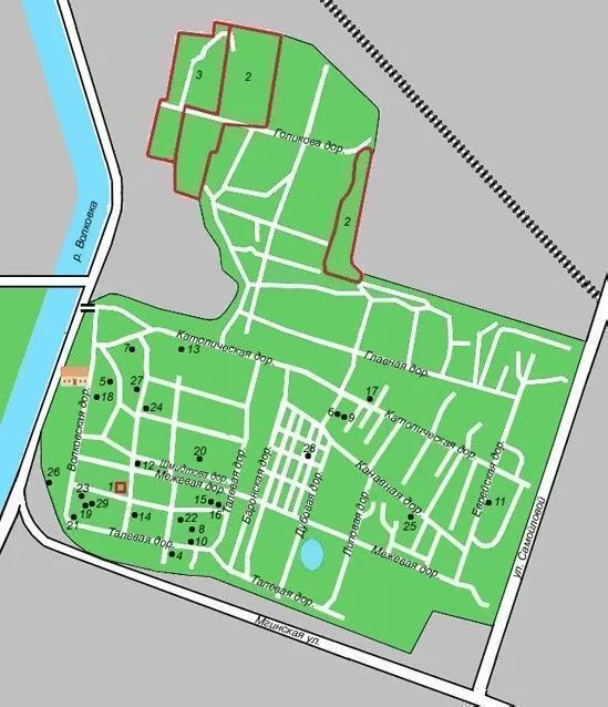 Кладбище делится на участки, есть возможность согласования семейного захоронения или захоронения в одну могилу.
