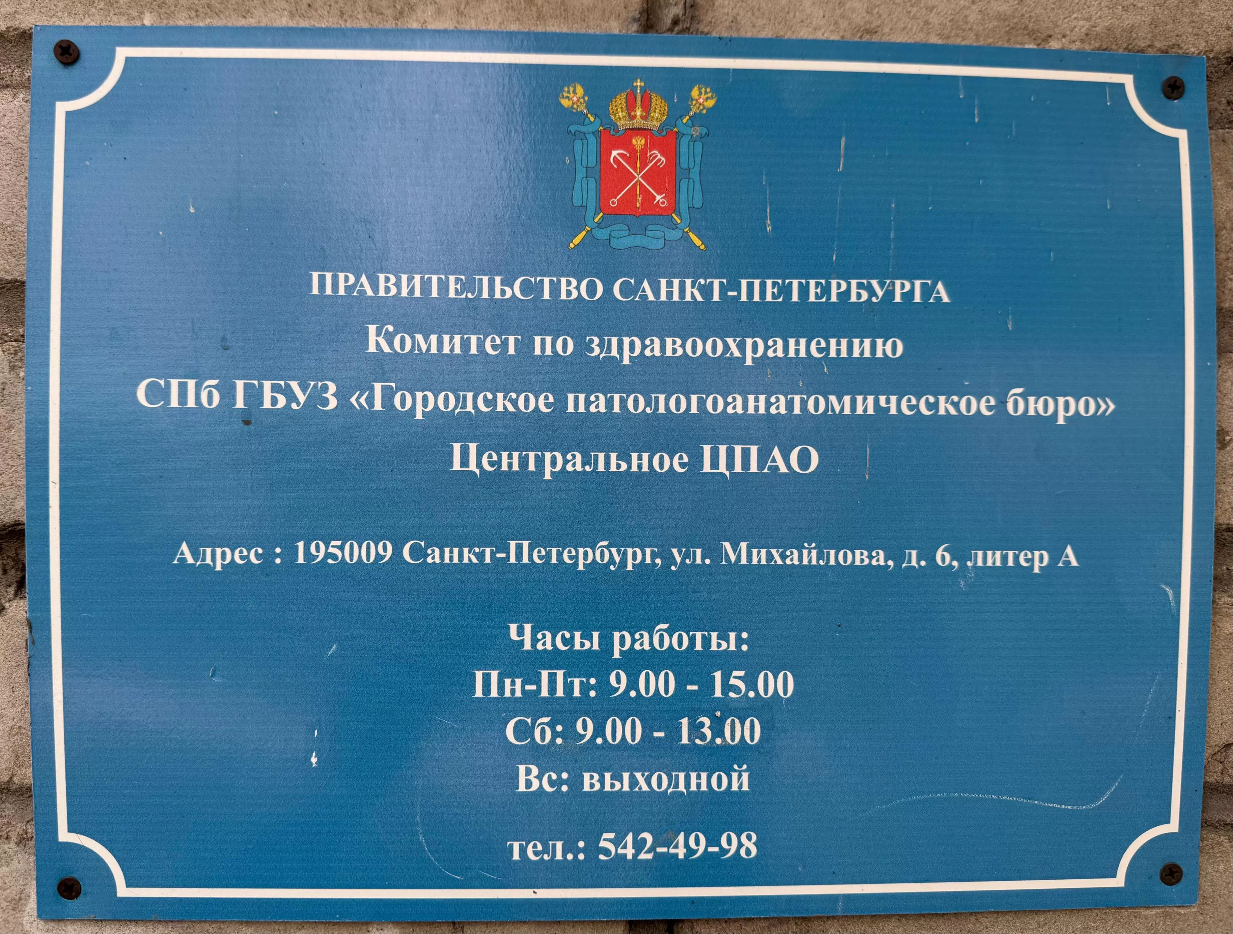Морг по адресу: Санкт-Петербург, ул.Михайлова, д.6